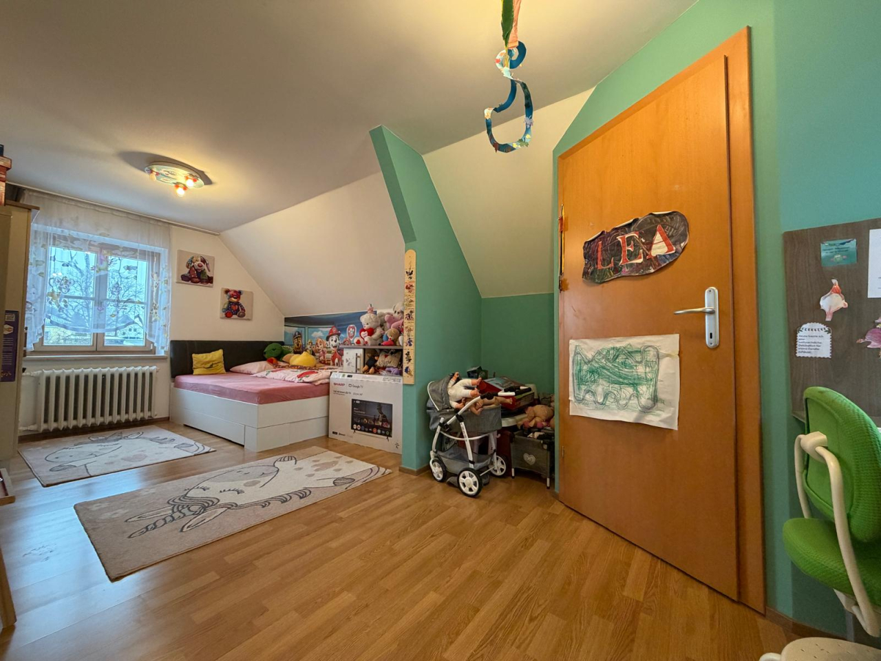 Im Obergeschoß befinden sich 2 großzügige Schlafräume und ein zweites WC.
